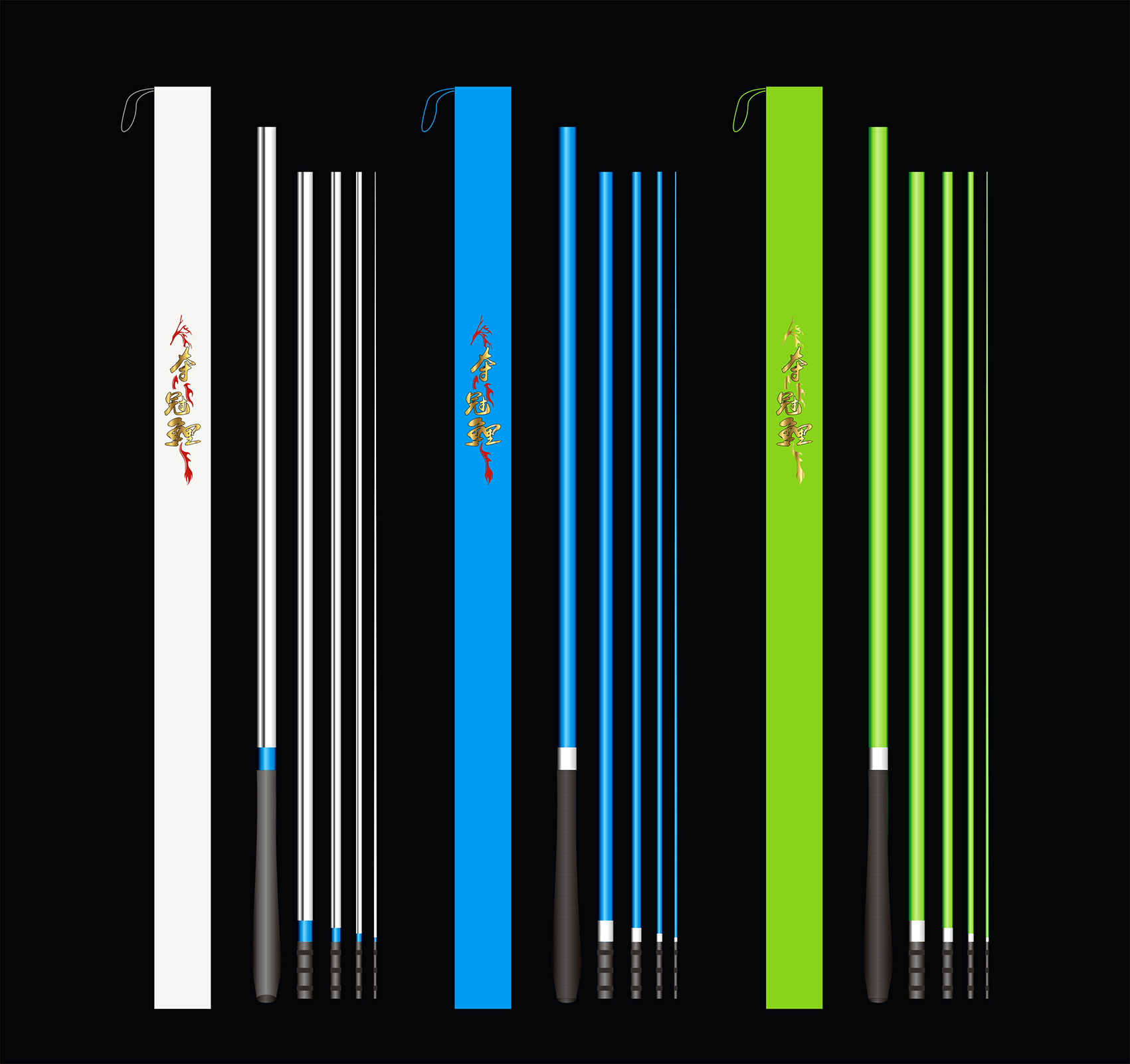 我想象中,這三款魚竿,采用電鍍漆的工藝,拿在手上噌亮的感覺,應(yīng)該很好,包括竿架和抄網(wǎng),做成一個系列,