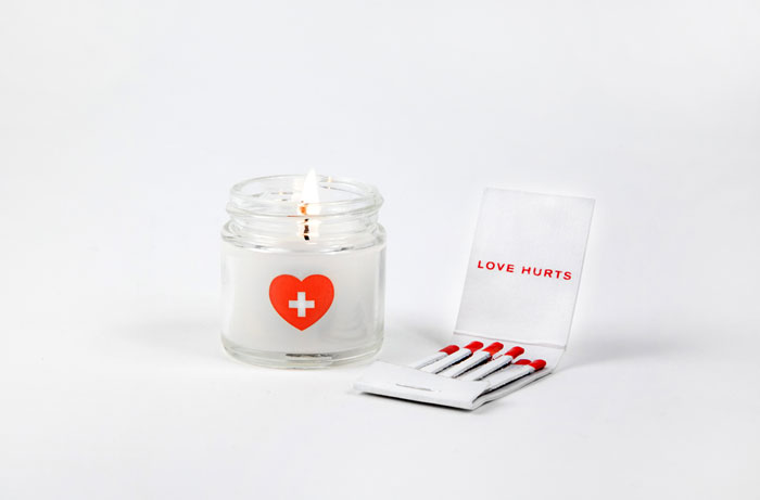 一個破碎的心的急救包。最初,我知道我不想做一個悲傷的工具,想用幽默感來接近這個產品。受傷的愛包含了所有的必需品,