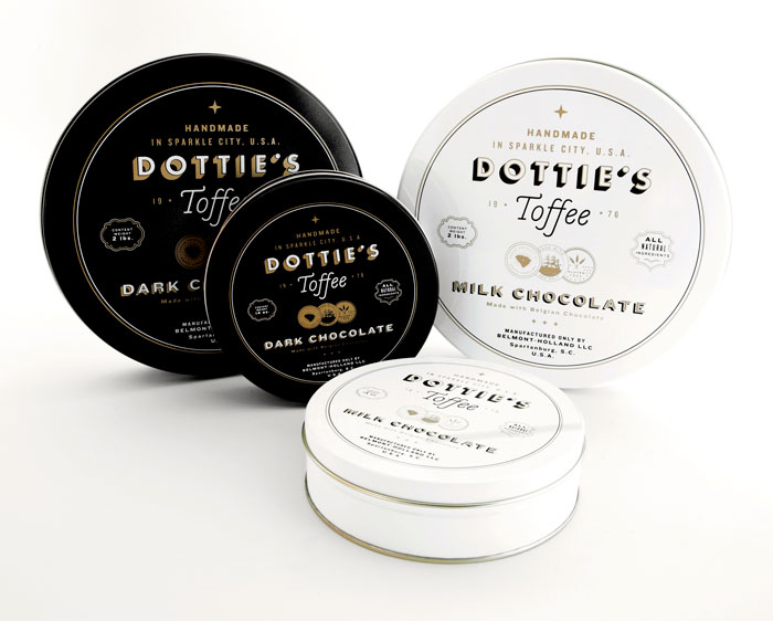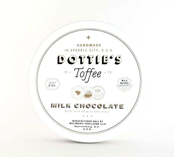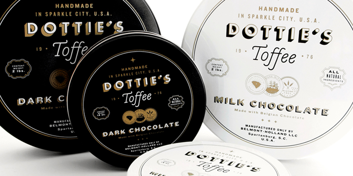 “多蒂的太妃糖是一個慶祝一切熟悉的甜蜜。點開始制作自己的太妃糖1976和她愛她的手藝是會傳染的。她的孫子尼克進行太妃糖制作傳統(tǒng)的這些天,他賣到全國范圍內的零售商。我們創(chuàng)造了一個品牌是甜的,復雜多變的太妃糖本身既懷舊與當代。明亮,過渡色對比的黑色,白色和灰色以及大膽,簡單的文字定義的品牌在包裝,抵押和網站。