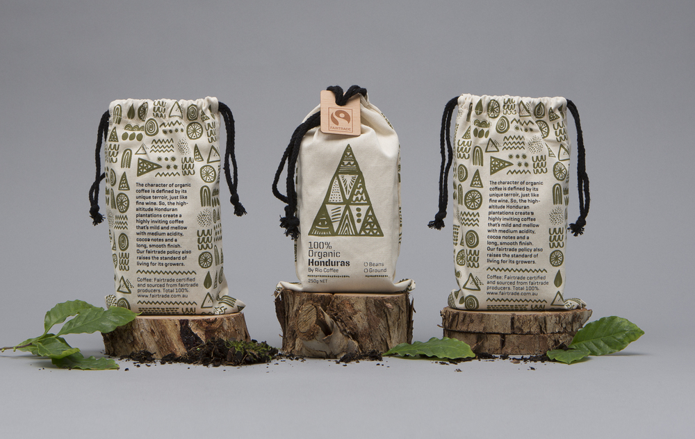 有什么更好的方式來開始你的一天比新鮮煮咖啡的氣味。對于那些尋找一個“杖上”,不僅味道好,而且是100%有機,看看里約咖啡。設計的聲音,每袋是一個抽象的標志,代表每個氣候的關鍵方面。在零售貨架的不同視覺分化,為消費者提供一個難忘的觸覺體驗,咖啡是裝在一個棉布袋,這也說明有機/公平貿易的耕作和工匠的手焙燒技術。